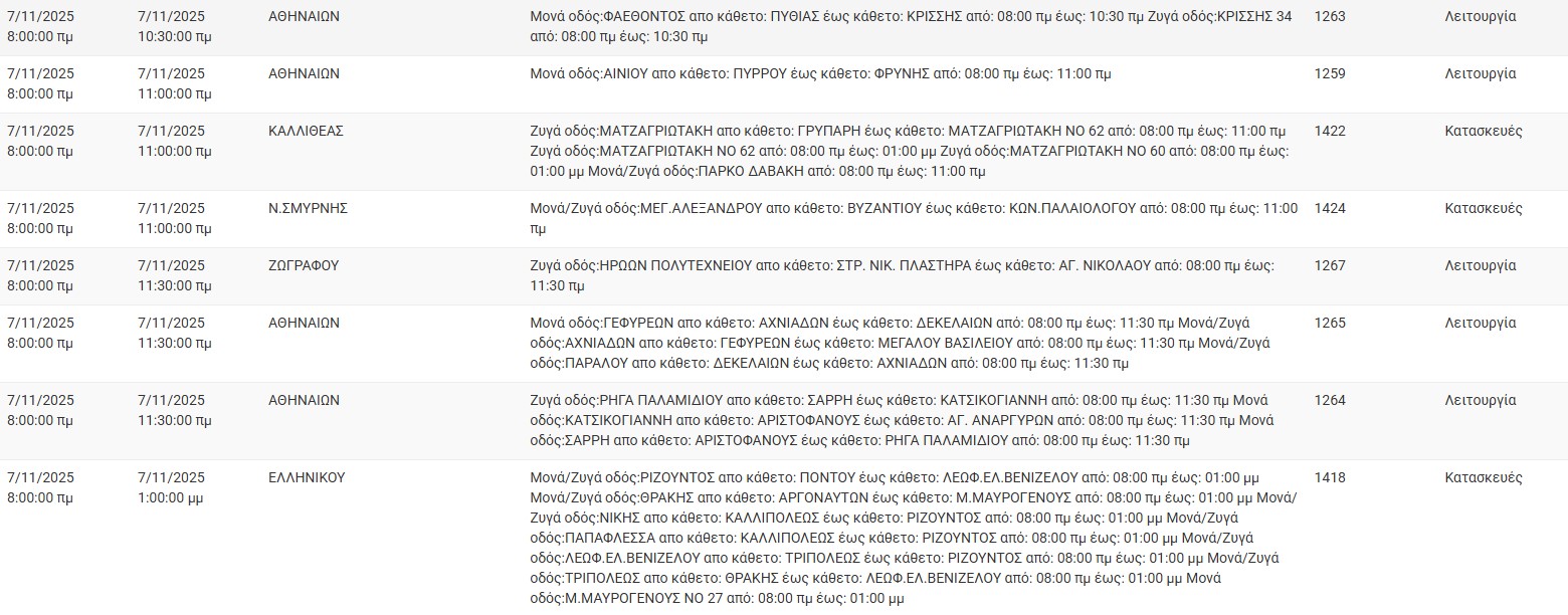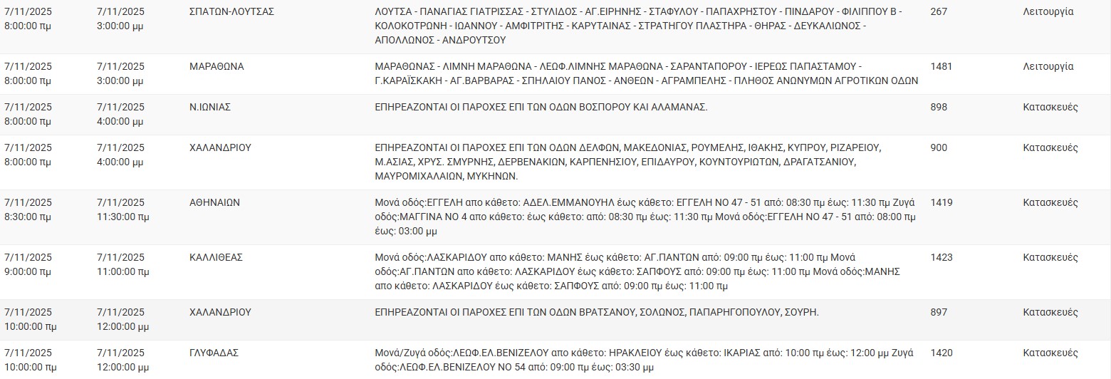 Διακοπές ρεύματος σήμερα (7/11) στην Αθήνα και σε άλλες 12 περιοχές της Αττικής