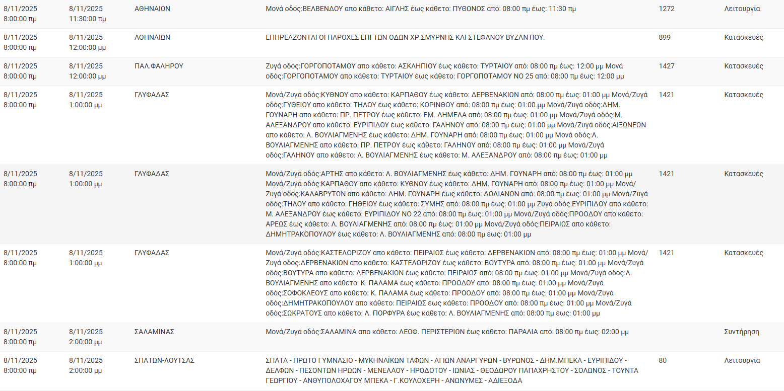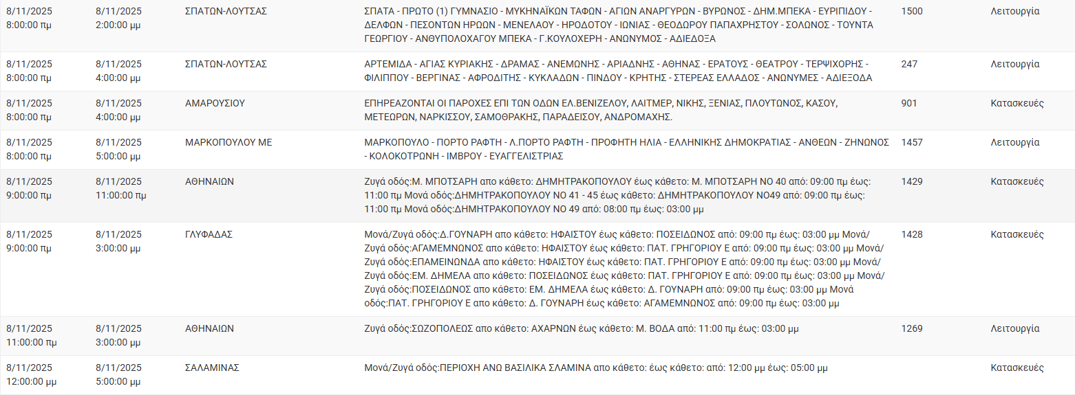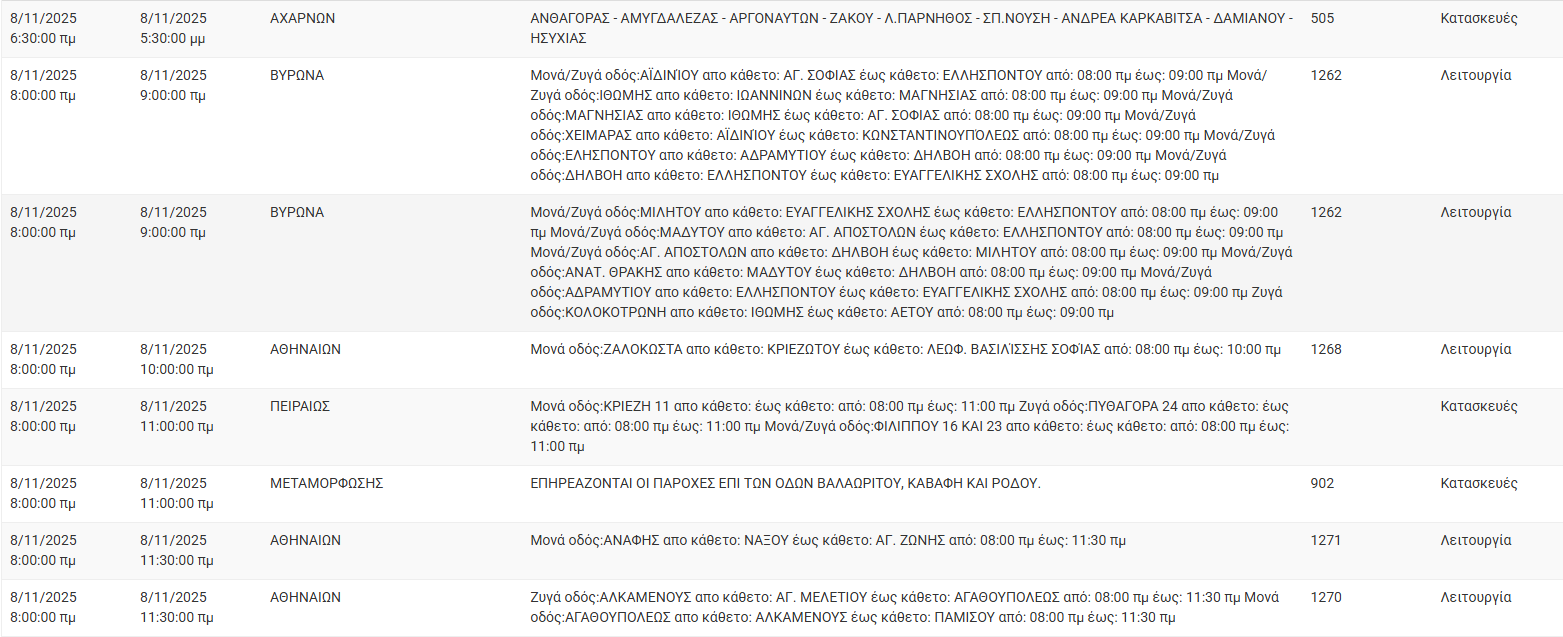 Διακοπές ρεύματος σήμερα (8/11) στην Αθήνα και σε άλλες 11 περιοχές της Αττικής