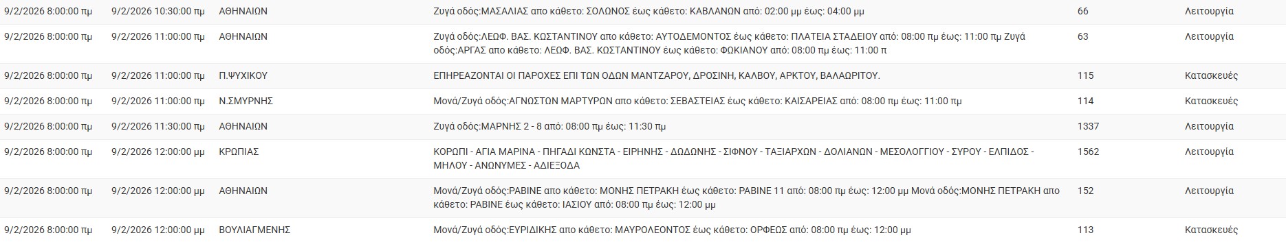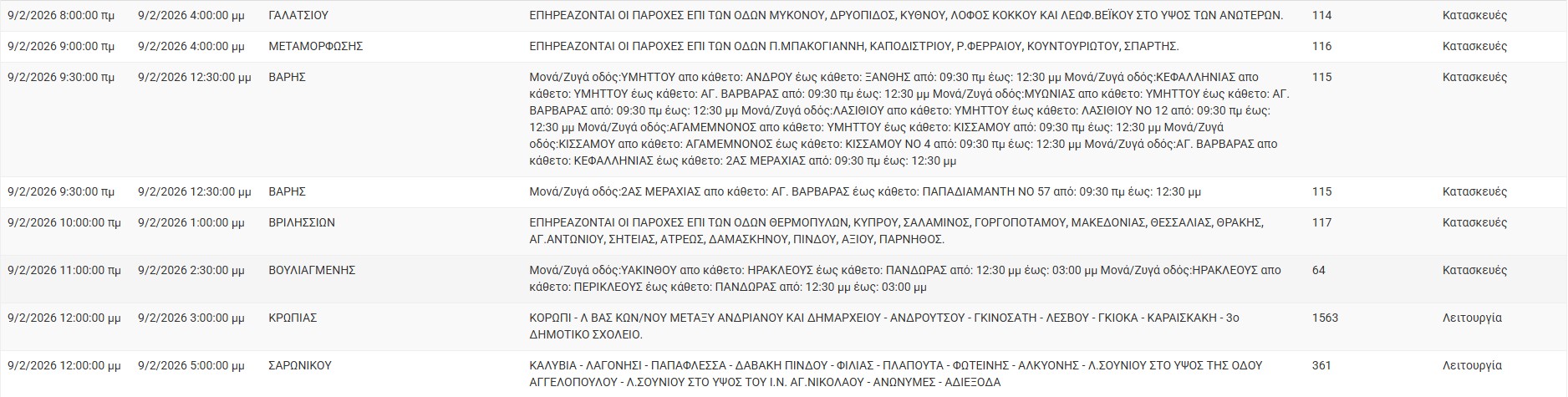 Διακοπές ρεύματος έχει προγραμματίσει για σήμερα, Δευτέρα 9 Φεβρουαρίου 2026,  ο ΔΕΔΔΗΕ σε διάφορες περιοχές της Αττικής.