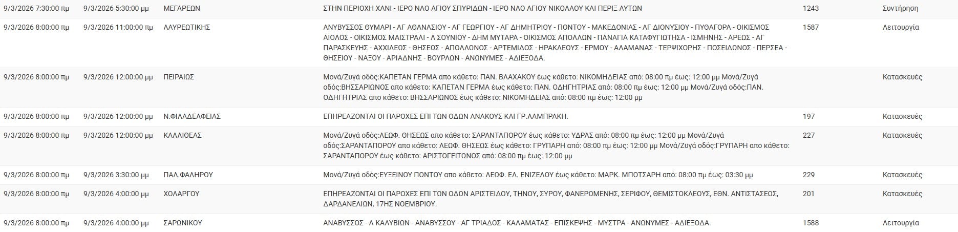 Διακοπές ρεύματος έχει προγραμματίσει για σήμερα, Δευτέρα 9 Μαρτίου 2026, ο ΔΕΔΔΗΕ σε διάφορες περιοχές της Αττικής.
