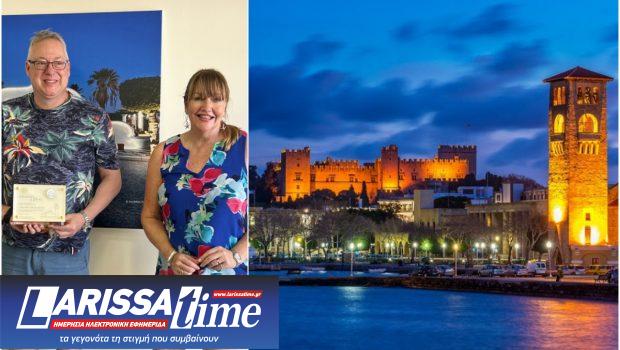 Πλατινένια πλακέτα, που αποτελεί την ανώτατη τιμητική διάκριση, απονεμήθηκε από τον Δήμο της Ρόδου σε ζευγάρι Βρετανών τουριστών που έχει επισκεφθεί το ελληνικό νησί πάνω από 100 φορές.