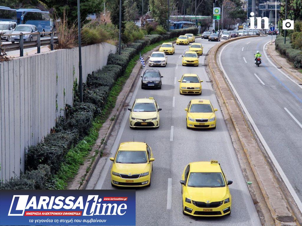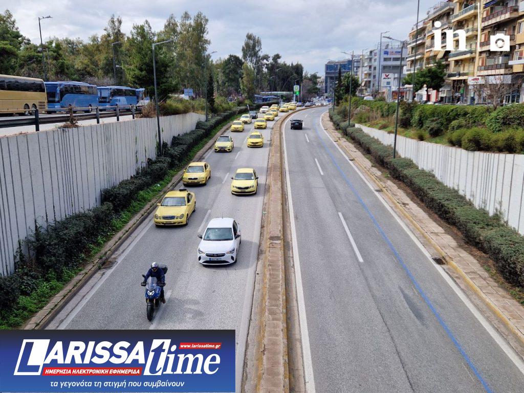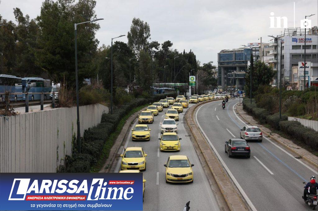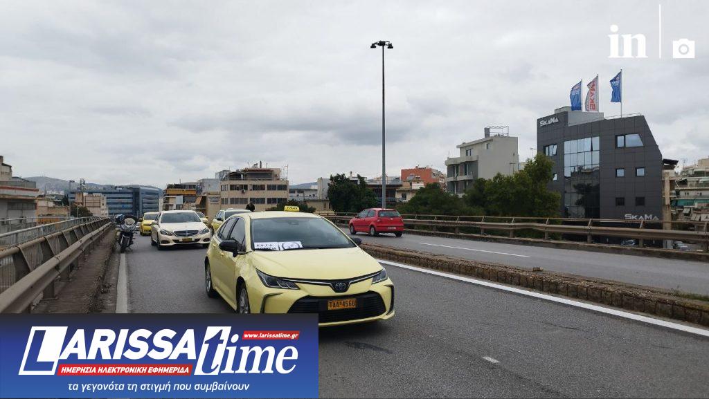 Στιγμιότυπα από την πορεία των οδηγών με τα ταξί