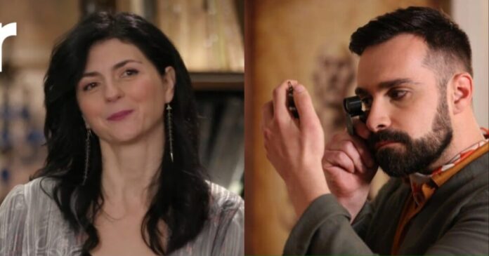 Ειδικότερα, η Ελπίδα, που είναι ιδιοκτήτρια καταστήματος με είδη γραφής και καλλιγραφίας, έφερε προς πώληση ένα σετ από τρία κεραμικά βάζα από τα μέσα του 20ου αιώνα.