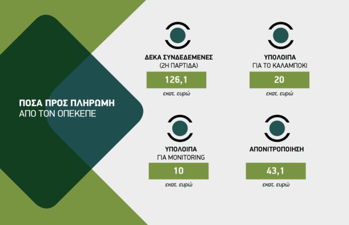 […] Οι πληρωμές για τις λοιπές συνδεδεμένες ενισχύσεις της ΕΑΕ 2024, θα πραγματοποιηθούν με την ολοκλήρωση των απαιτούμενων ελέγχων, σύμφωνα με τον προγραμματισμό του Ο.Π.Ε.Κ.Ε.Π.Ε. εντός του δευτέρου δεκαπενθημέρου του Μαΐου, ως εξής: