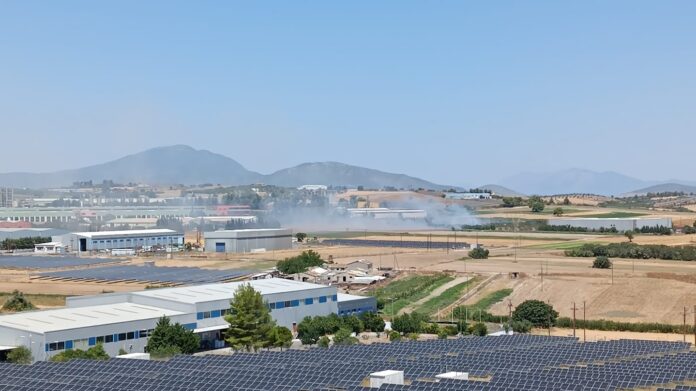 Σύμφωνα με την Πυροσβεστική, η κατάσβεση είναι σε εξέλιξη, ενώ η φωτιά καίει σε ξερά χόρτα κοντά σε βιομηχανίες και σταθμό τρένων. Κατά τις ίδιες πληροφορίες, μέχρι στιγμής, δεν απειλούνται εγκαταστάσεις.