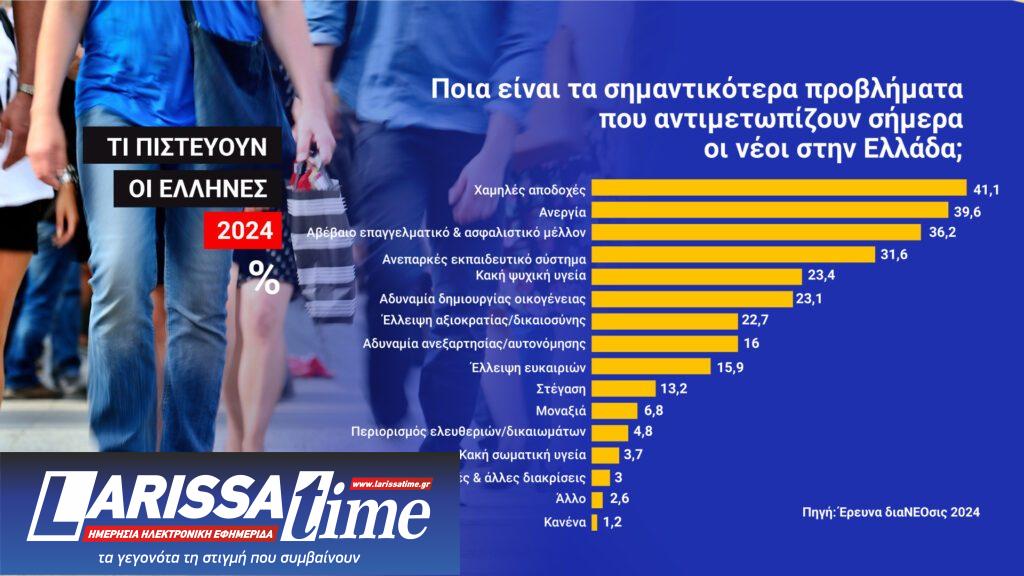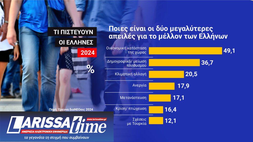 Το 52,7% δηλώνει ότι για τα τεράστια προβλήματα που αντιμετωπίζει σήμερα η Ελλάδα φταίει η κυβέρνηση. Το 49,1% δηλώνει ότι η οικονομική κατάσταση της χώρας μας θα εξακολουθεί να είναι κακή και στο μέλλον.