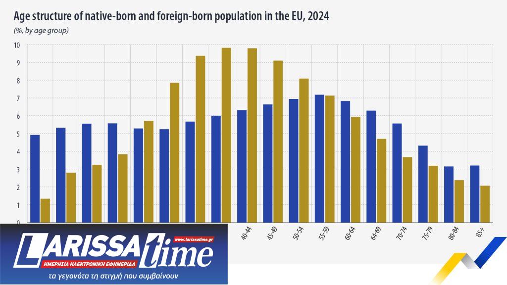 Την 1η Ιανουαρίου 2024, η διάμεση ηλικία του πληθυσμού που γεννήθηκε στην ΕΕ ήταν 2 έτη υψηλότερη από εκείνη του πληθυσμού που γεννήθηκε στο εξωτερικό (45,1 έναντι 43,1 ετών).
