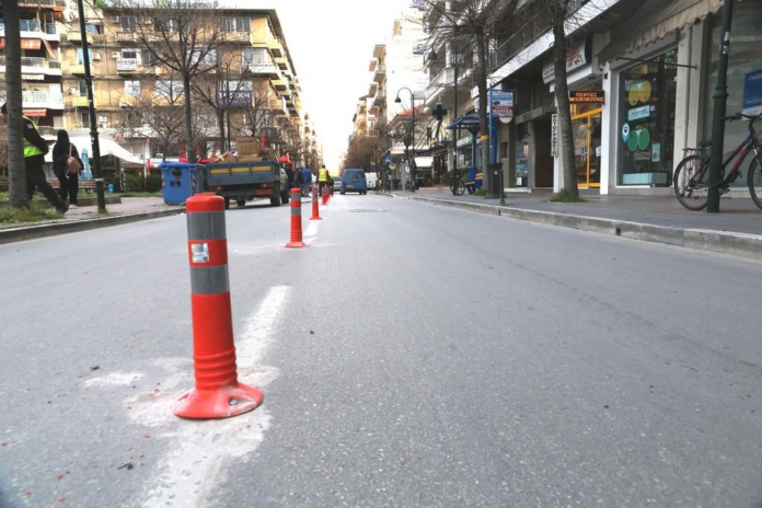 Με την τοποθέτηση οριοδεικτών (κορύνων) ξεκινά το πλέγμα παρεμβάσεων του Δήμου Λαρισαίων για την αντιμετώπιση του οξύτατου κυκλοφοριακού και του προβλήματος της στάθμευσης στο κέντρο της πόλης.