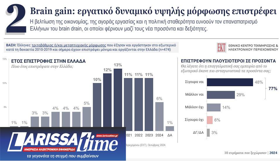 Η βελτίωση της οικονομίας, της αγοράς εργασίας και η πολιτική σταθερότητα ευνοούν τον επαναπατρισμό Ελλήνων του brain drain, οι οποίοι φέρουν μαζί τους νέα προσόντα και δεξιότητες.