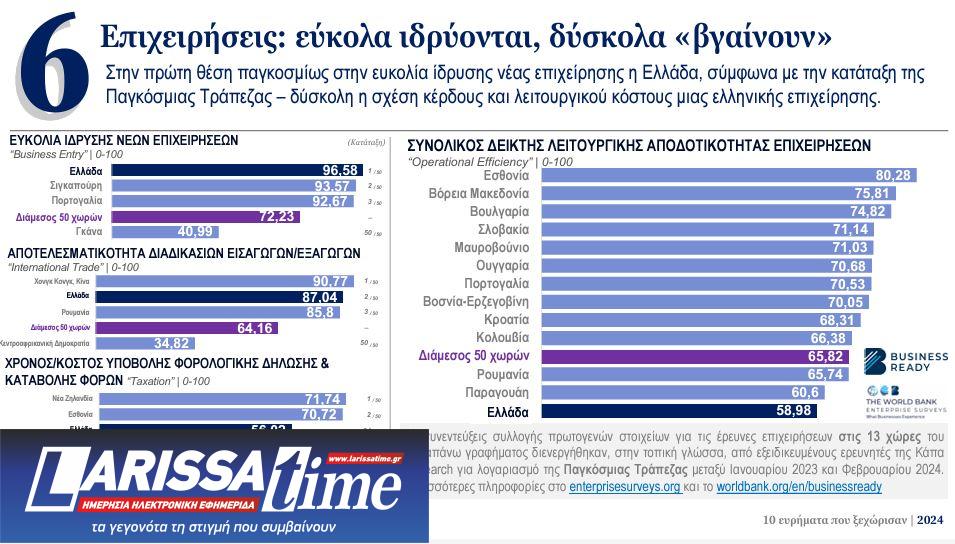 Στην πρώτη θέση παγκοσμίως στην ευκολία ίδρυσης νέας επιχείρησης στην Ελλάδα, σύμφωνα με την κατάταξη της Παγκόσμιας Τράπεζας – δύσκολη η σχέση κέρδους και λειτουργικού κόστους μια ελληνικής επιχείρησης.