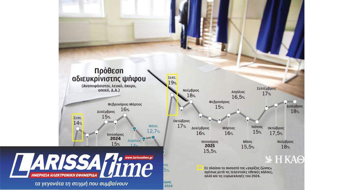Η Pulse RC αποτύπωσε για την «Κ» την εξέλιξη της «γκρίζας ζώνης» από την τελευταία μέτρηση που έκανε πριν από τις εκλογές του 2023 μέχρι σήμερα, που καταγράφεται στην πρόθεση ψήφου στο 18%. Στα δύο πλαίσια αναγράφεται το ποσοστό των αναποφάσιστων αμέσως μετά τις τελευταίες εθνικές κάλπες, αλλά και τις ευρωεκλογές του 2024.