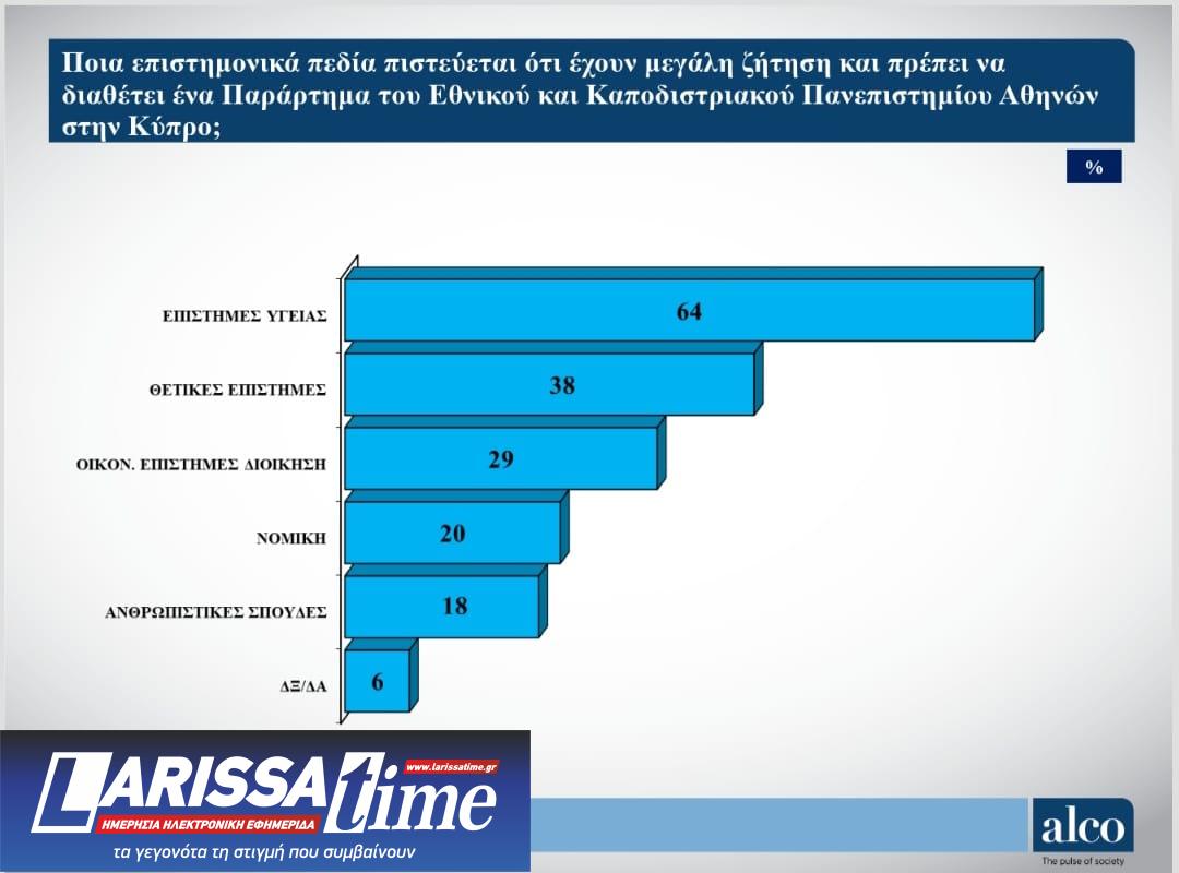 Ως προς το ποια επιστημονικά πεδία έχουν τη μεγαλύτερη ζήτηση και άρα θα πρέπει να τα διαθέτει ένα παράρτημα του ΕΚΠΑ στην Κύπρο, εδώ σαφώς προηγούνται οι Επιστήμες Υγείας, με 64% και ακολουθούν οι Θετικές Επιστήμες με 38%, οι Οικονομικές Επιστήμες και η Διοίκηση με 29%, η Νομική με 20% και οι Ανθρωπιστικές Σπουδές με 18%