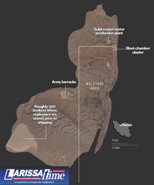 Μεταξύ των πλέον ευαίσθητων σημείων συγκαταλέγεται το στρατιωτικό συγκρότημα Πάρτσιν, νοτιοανατολικά της Τεχεράνης, έκτασης 52 τετραγωνικών χιλιομέτρων, το οποίο έχει συνδεθεί με δοκιμές υψηλών εκρηκτικών.