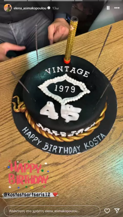 Ο Κώστας Τσαρτσαρής γιόρτασε τα γενέθλιά του, με την ηθοποιό σύντροφό του να επιλέγει μια ασπρόμαυρη vintage τούρτα η οποία αποκάλυπτε την ηλικία του.
