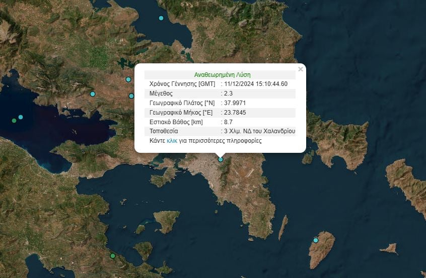 Δύο σεισμοί 2,3 και 2,8 Ρίχτερ αναστάτωσαν το απόγευμα της Τετάρτης 11 Δεκεμβρίου 2024 την Αθήνα. Οι σεισμικές δονήσεις έγιναν αισθητές σε όλη την πρωτεύουσα καθώς και σε πολλές περιοχές της Αττικής.