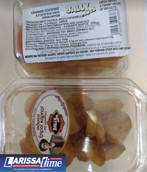 Αποξηραμένα βερίκοκα ανακαλεί από την αγορά ο Ενιαίος Φορέας Ελέγχου Τροφίμων (ΕΦΕΤ). Συγκεκριμένα, ο Φορέας και ειδικότερα η Περιφερειακή Δ/νση Ανατολικής Μακεδονίας & Θράκης, κατά τη διενέργεια ελέγχων, προέβη σε δειγματοληψία τροφίμου με στοιχεία «Εκλεκτοί ξηροί καρποί BALLY NUTS ΒΕΡΥΚΟΚΑ ΑΠΟΞΗΡΑΜΕΝΑ ΠΡΟΕΛΕΥΣΗ: ΤΟΥΡΚΙΑΣ» σε πλαστική κλειστή συσκευασία 250 γραμμαρίων.