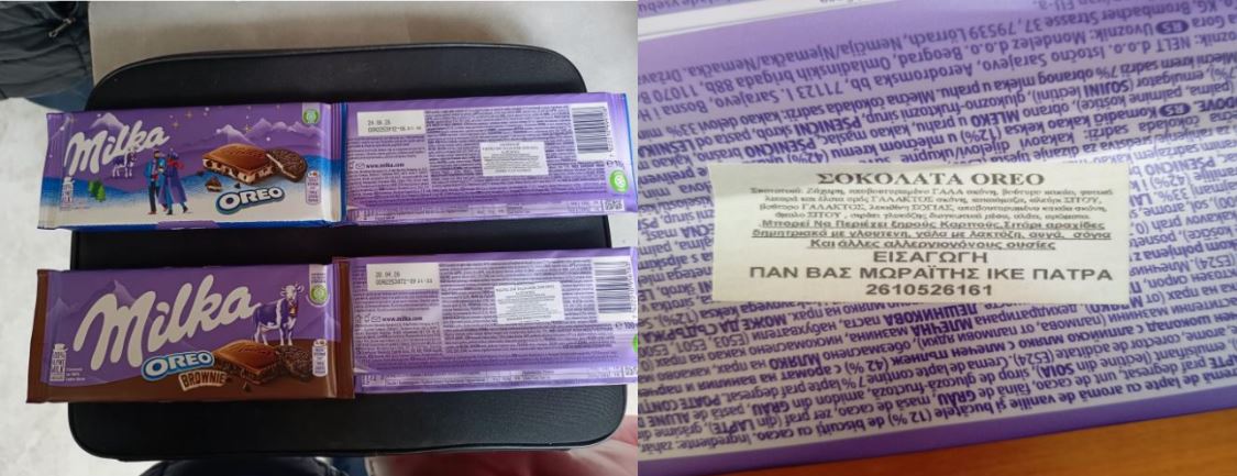 Συγκεκριμένα πρόκειται για τα προϊόντα «Milka σοκολάτα oreo» των 100 γρ., με ημερομηνία ανάλωσης κατά προτίμηση πριν από 24.06.2026 και «Milka σοκολάτα oreo Brownies» των 100 γρ., με ημερομηνία ανάλωσης κατά προτίμηση πριν από 28.04.2026.