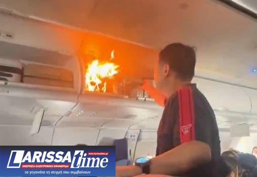Βίντεο δείχνουν την φωτιά στον αποθηκευτικό χώρο και τους επιβάτες πανικόβλητους.
