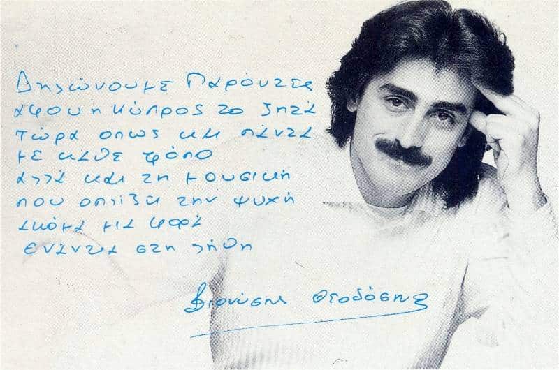 Κάπως έτσι έφυγε άδικα και πρόωρα από τη ζωή ο Διονύσης Θεοδόσης, ίσως ο καλύτερος ερμηνευτής που ανέδειξε το ελληνικό τραγούδι στη δεκαετία του ’80. Ένας τραγουδιστής με ήθος, ευγένεια, αξιοπρέπεια και φωνή που ανέδυε μια μελαγχολία κι «εσωστρέφεια», αλλά και συνάμα τόση τρυφερότητα και ομορφιά. Ώρες-ώρες, σου έδινε την εντύπωση ότι …ντρεπόταν να τραγουδήσει, δείγμα της ποιότητάς του ως ανθρώπου.