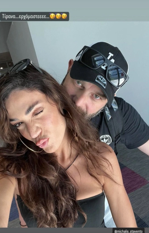 Η Ήβη Αδάμου ανακοίνωσε στο διαδικτυακό της κοινό την προγραμματισμένη εμφάνισή της στην πρωτεύουσα της Αλβανίας, ποζάροντας με τον αγαπημένο της. Στη φωτογραφία που δημοσίευσε φαίνεται το ζευγάρι στο αεροδρόμιο κατά την άφιξή τους στα Τίρανα για την επόμενη συναυλία της. Έγραψε: «Τίρανα…Ερχόμαστε…».