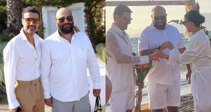 Ο Παντελής Τουτουντζής παντρεύτηκε τον σύντροφό του Νάσο, με κουμπάρα του την Ελένη Φουρέιρα στην παραλία Κομμός στην Κρήτη.