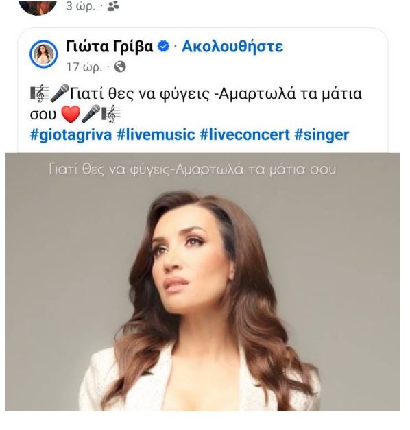 O 54χρονος στην ανάρτησή του κοινοποίησε ένα τραγούδι της Γιώτας Γρίβα με τίτλο: «Γιατί θες να φύγεις-αμαρτωλά τα μάτια σου».