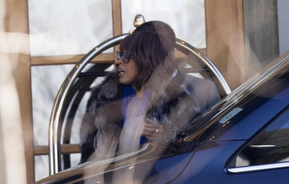 Η Ντάσα Ζούκοβα ήταν η επιτομή της κομψότητας, με ένα εντυπωσιακό μακρύ φόρεμα με ανάγλυφα σχέδια στο μπροστινό μέρος. Είχε πέρλες στα μανίκια ενώ προκειμένου να αντιμετωπίσει τις χαμηλές θερμοκρασίες, φορούσε και μακριά λευκή κάπα με κλειστό λαιμό. Το μακιγιάζ ήταν πολύ διακριτικό. Αντίθετα, τα μαλλιά της τα είχε πιασμένα σε έναν ψηλό σικ σινιόν κότσο. Ο Σταύρος Νιάρχος ήταν κι αυτός ιδιαίτερα κομψός με μπλε σκούρο κοστούμι και παπιγιόν.