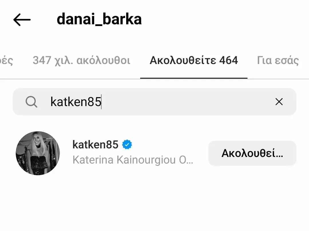 Η Κατερίνα Καινούργιου έκανε… unfollow τη Δανάη Μπάρκα από το Instagram ενώ η τελευταία συνεχίζει να την ακολουθεί.