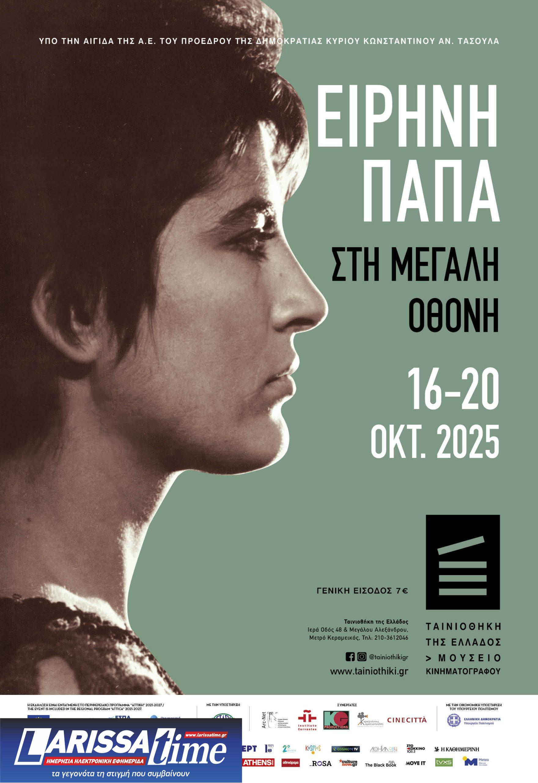 Από τις 16 έως τις 20 Οκτωβρίου, η Ταινιοθήκη της Ελλάδος, σε συνεργασία με το Ίδρυμα Μιχάλης Κακογιάννης και το Φεστιβάλ Κινηματογράφου Θεσσαλονίκης, τιμά τη μνήμη και το έργο της απόλυτης Ελληνίδας σταρ που μάγεψε το διεθνές κοινό, της Ειρήνης Παπά.