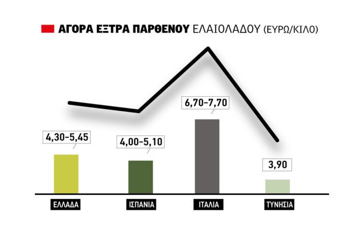 Στην Ιταλία επικρατεί μια φάση σταθερότητας στις τιμές, λόγω επαρκών αποθεμάτων, αύξησης εισαγωγών και ζήτησης που δεν δείχνει σημάδια ώθησης, με τα αποθέματα έξτρα παρθένου να ξεπερνούν τους 153.000 τόνους, και το σύνολο των αποθεμάτων ελαιολάδου να ξεπερνά τους 300.000 τόνους, με μεγάλο μέρος αυτών να προέρχεται από την Ισπανία και την Τυνησία.