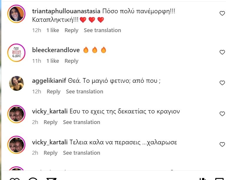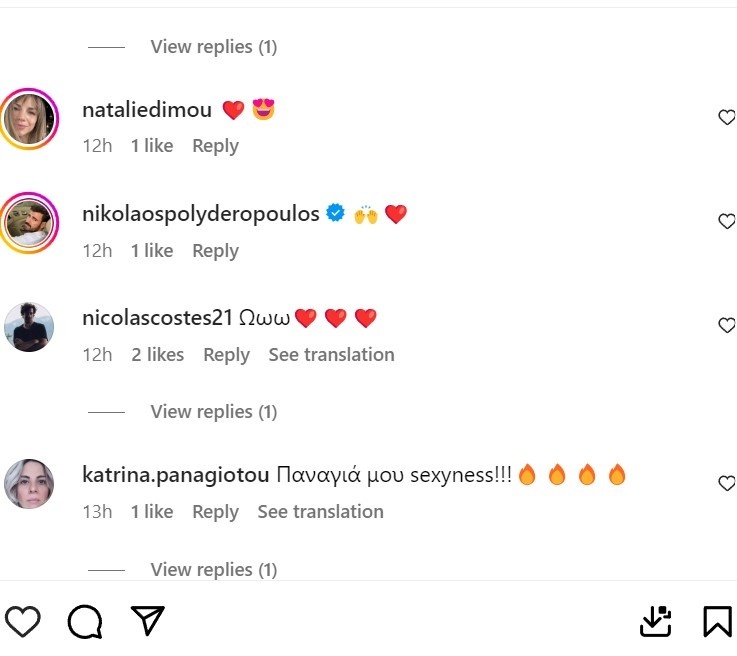 Η ηθοποιός δεν πρόλαβε να δημοσιεύσει τις φωτογραφίες με ολόσωμο μαγιό και αμέσως τα σχόλια άρχισαν να πέφτουν βροχή του στυλ: «Mamma mia», «Παναγιά μου sexyness!!!», « Miss Greece ❤️❤️❤️❤️ 2024», «Θεά».