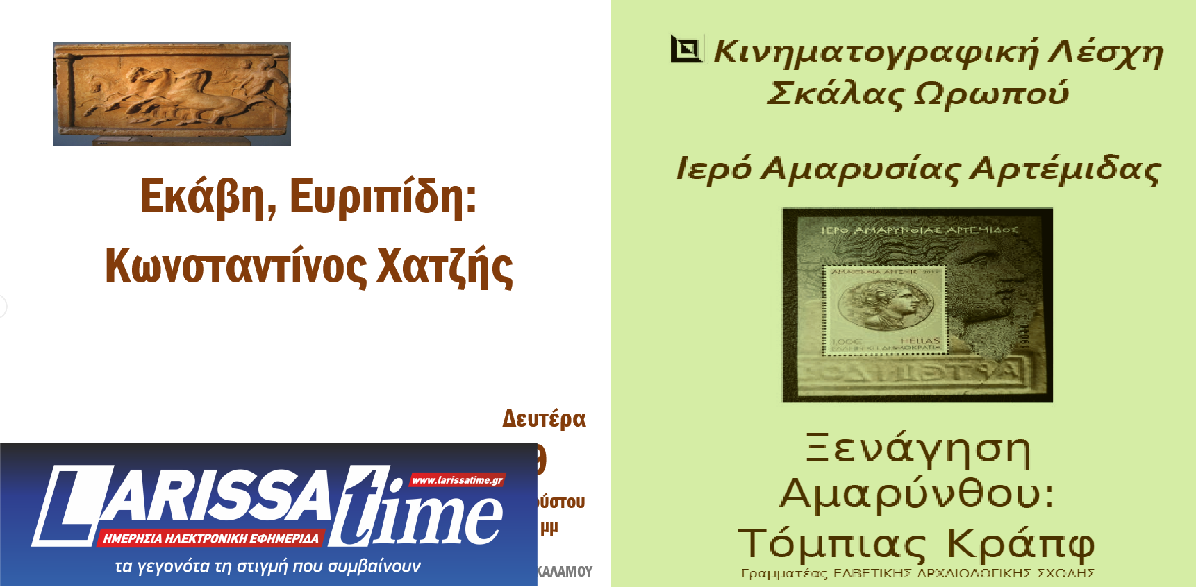 Δύο εκδηλώσεις πολιτισμού, στους Αρχαιολογικούς Χώρους, του Αμφιαρείου Ωρωπού, και της Αμαρύνθου, υποστηρίζει η Κινηματογραφική Λέσχη Σκάλας Ωρωπού, το διήμερο 19 και 20 Αυγούστου.