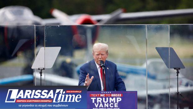 O Ντόναλντ Τραμπ πίσω από προστατευτικό, αλεξίσφαιρο τζάμι. Κάτι που υπενθυμίζει την απόπειρα εναντίον του.