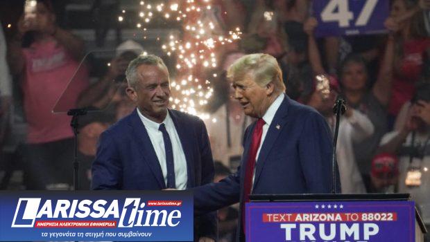 Ο Ντόναλντ Τραμπ δήλωσε χθες Παρασκευή ότι ο ως πρότινος ανεξάρτητος υποψήφιος στις προεδρικές εκλογές Ρόμπερτ Φ. Κένεντι ο νεότερος (αριστερά, στη φωτογραφία αρχείου του Reuters/Go Nakamura, επάνω, με τον Τραμπ), αντιεμβολιαστής, γνωστός διότι ενστερνίζεται απίθανες θεωρίες συνωμοσίας, θ’ αναλάβει «μεγάλο ρόλο» στο πεδίο της δημόσιας υγείας αν ο Ρεπουμπλικάνος επικρατήσει στις προεδρικές εκλογές την Τρίτη.