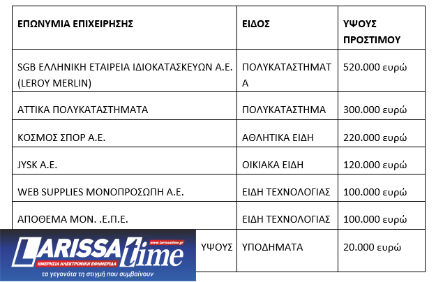 Σύμφωνα με τις διατάξεις του άρθρου 13α του ν. 2251/1994, περί ανακοίνωσης των επωνυμιών των επιχειρήσεων στις οποίες επιβλήθηκε πρόστιμο ύψους μεγαλύτερου από 50.000 ευρώ επιβλήθηκαν τα ακόλουθα πρόστιμα: