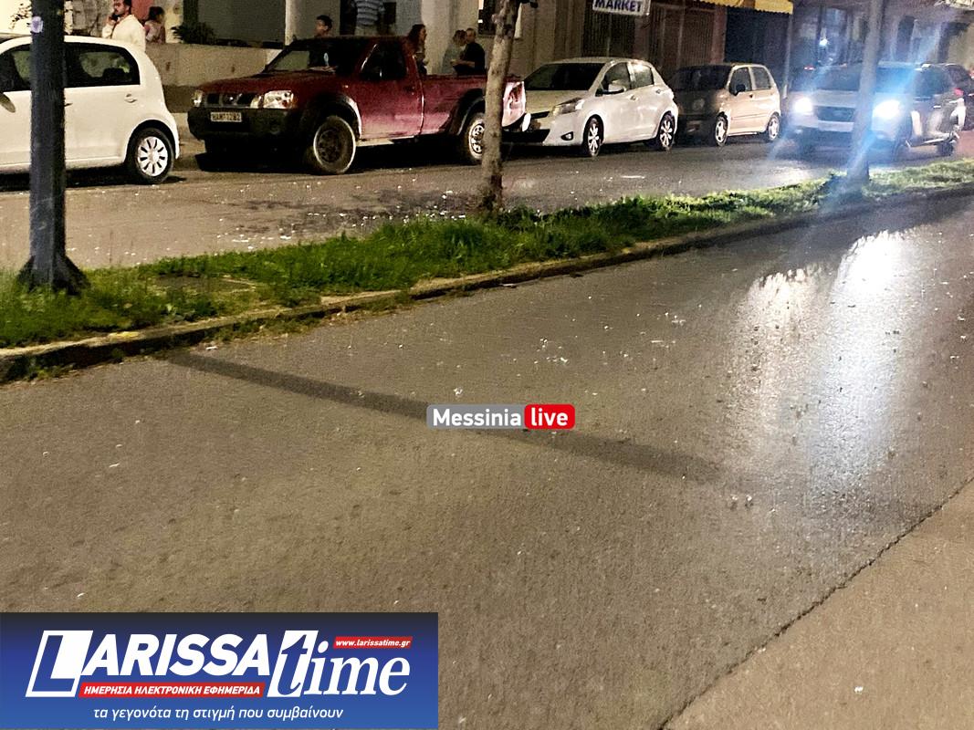 Γέμισε με γυαλιά και σπασμένα τζάμια η συμβολή των οδών Ακρίτα και Πλάτωνος (Πηγή: Messinia Live)