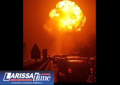 Βίντεο από διερχόμενους οδηγούς δείχνουν το τεράστιο μανιτάρι καπνού και τις φλόγες που προκλήθηκαν μετά την έκρηξη.