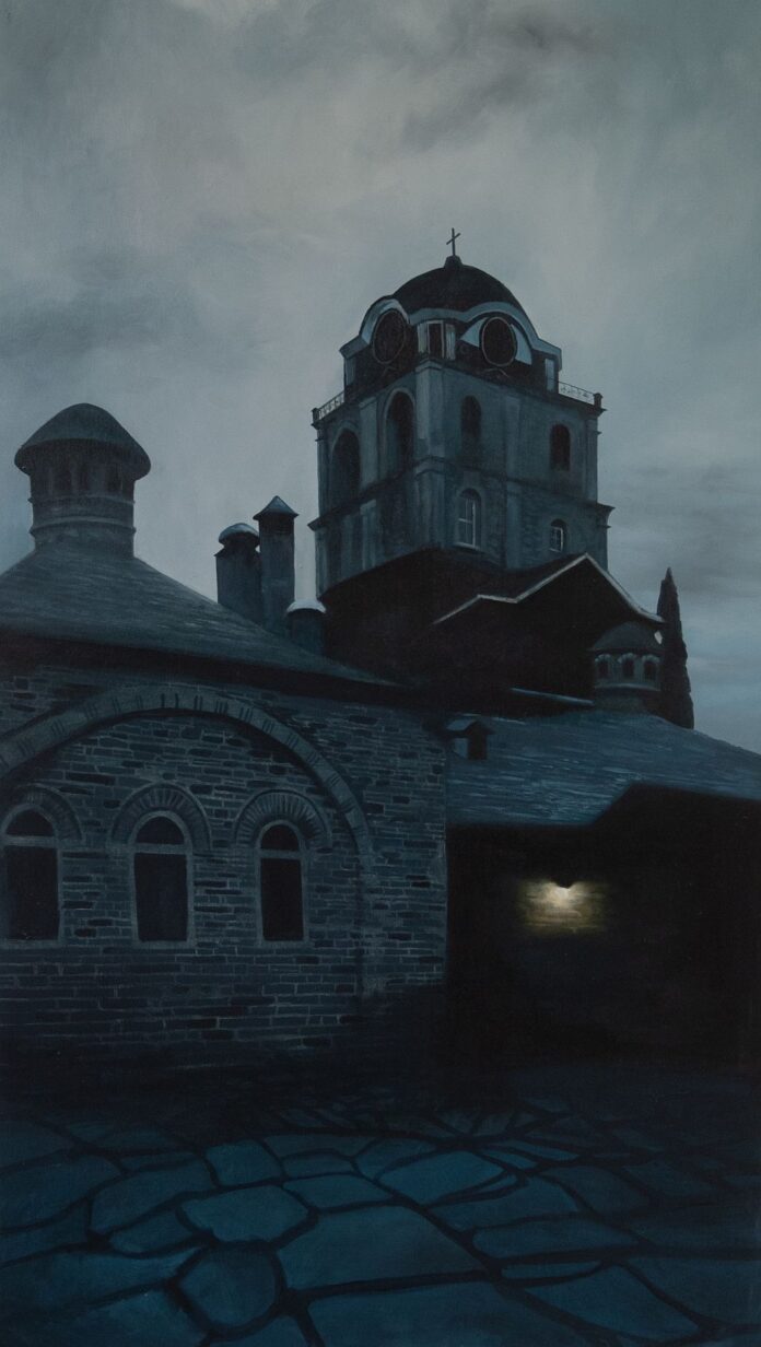 Στο Άγιον Όρος άφησα τον εαυτό μου να αφομοιώσει αυτά που έβλεπα χωρίς να πιεστώ να ζωγραφίσω αυτό που ήδη είχα κατακτήσει στο παρελθόν. Ήρθα σε σύγκρουση με το εικαστικό μου έργο για να δημιουργήσω κάτι νέο, κάτι που δεν είχα ζωγραφίσει ξανά. Κατά κάποιον τρόπο, σκεφτόμουν πως ένας μονάχος και ένας καλλιτέχνης, παρά την απόσταση που τους χωρίζει, στις ζωές τους συμβαδίζουν ωστόσο παράλληλα: όλη αυτή η εσωτερική πάλη, ο σκοπός μιας ζωής, η αφοσίωση και προσήλωση στο έργο. Η υπομονή και η προσευχή του καθενός με τον δικό του τρόπο. Πάνω από όλα, η επίτευξη ενός έργου με τον πιο αληθινό τρόπο. «Ψάχνουμε και εμείς “το φως το αληθινό”» (Ημερολόγιο, 4 Ιουνίου 2021).
