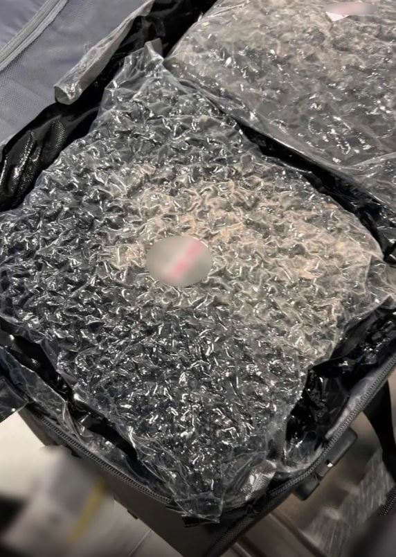 Από τον έλεγχο που πραγματοποιήθηκε στην αποσκευή του στο χώρο των αφίξεων, κατελήφθη να κατέχει εντός της αποσκευής του 31 νάιλον συσκευασίες, που περιείχαν συνολικά 32 κιλά και 600 γραμμάρια ακατέργαστης κάνναβης υδροπονικής καλλιέργειας (skunk).