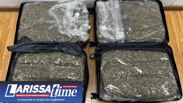 Ειδικότερα, κατελήφθη να κατέχει συσκευασίες με ακατέργαστη κάνναβη υδροπονικής καλλιέργειας (skunk) συνολικού μικτού βάρους 26 κιλών και 400 γραμμαρίων, τις οποίες είχε αποκρύψει εντός δύο αποσκευών.