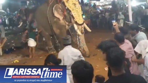 Πανικός επικράτησε σε μεγάλο φεστιβάλ στην Κεράλα της Ινδίας, όταν ελέφαντας επιτέθηκε στο πλήθος και άρπαξε από το πόδι έναν άντρα.