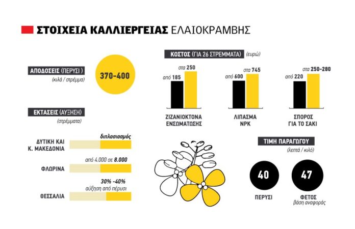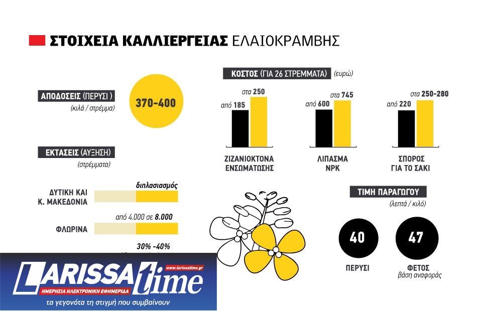 Στη Θεσσαλία εξάλλου σύµφωνα µε τον γεωπόνο, Βάιο Στεργίου, επίσης σπάρθηκαν περισσότερες εκτάσεις µε ελαιοκράµβη, της τάξης του 30% -40% σε σχέση µε πέρυσι, ενώ και εδώ παρατηρήθηκε έλλειψη σπόρου.
