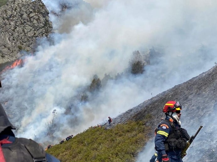 Στην περιοχή Genestoso, Asturias στην Ισπανία όπου μαίνονται μεγάλες πυρκαγιές επιχειρούν από τα ξημερώματα του Σαββάτου, Έλληνες δασοκομάντος.