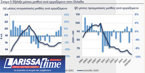 Παράλληλα, οι εργαζόμενοι στην Ελλάδα είναι οι μοναδικοί σε επίπεδο Ευρώπης που εξακολουθούν να έχουν χαμηλότερο ονομαστικό μισθό σε σχέση με πριν δέκα χρόνια. Μάλιστα, εάν η σύγκριση γίνει με τα προ μνημονίων επίπεδα, οι απώλειες φθάνουν στο 17% χωρίς να λαμβάνεται υπόψη η όποια ζημιά έχει προκαλέσει ο πληθωρισμός.