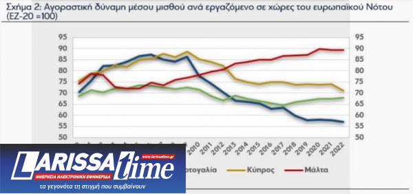 Το 2009, έτος κατά το όποιο άρχισε να εκδηλώνεται η κρίση χρέους, βρισκόταν στο 86,4%, προτού μειωθεί απότομα τα χρόνια που ακολούθησαν. Έκτοτε, και ειδικότερα από το 2018 και έπειτα, βρίσκεται σε ήπια υποχώρηση (με εξαίρεση το 2020 κατά το οποίο σημείωσε οριακή άνοδο) ενώ αποκλίνει και από τις υπόλοιπες χώρες του ευρωπαϊκού Νότου με χαρακτηριστικά συγκρίσιμα με αυτά της Ελλάδας. Το 2022, αντιπροσώπευε το 56,9% του μέσου μισθού στην Ευρωζώνη και ήταν η χαμηλότερη στο μπλοκ. Άλλωστε, σύμφωνα με την ίδια ανάλυση της Eurobank, κατά 23,9% χαμηλότεροι σε σχέση με το ιστορικό υψηλό που είχε καταγραφεί το 2009, πριν φανούν οι επιπτώσεις της κρίσης χρέους, διαμορφώνονται σήμερα οι μισθοί στην Ελλάδα.