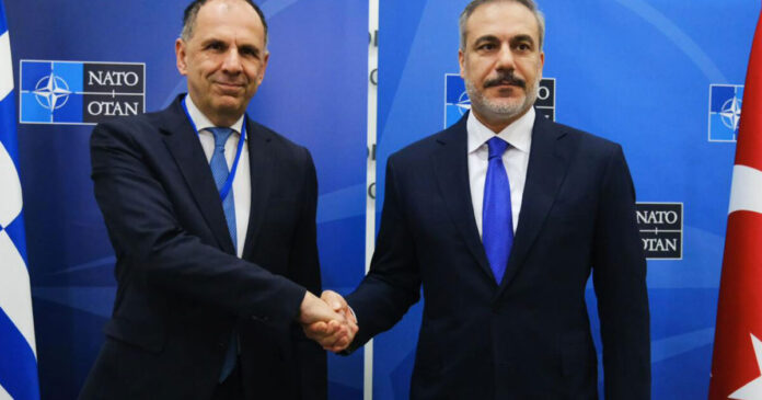Η χθεσινή συνάντηση των κ. Γεραπετρίτη και Φιντάν στο περιθώριο της συνόδου των υπουργών Εξωτερικών του ΝΑΤΟ, διεξήχθη πάντως κατ’ ιδίαν, στο γνώριμο δηλαδή στυλ που έχουν καθιερώσει οι δύο υπουργοί και διήρκεσε περίπου μία ώρα. Επί τάπητος βρέθηκαν και τα περιφερειακά και διεθνή θέματα, αλλά και τα βήματα που έχουν γίνει έως αυτή τη στιγμή στο πλαίσιο της διμερούς συνεργασίας Ελλάδας – Τουρκίας. Υπενθυμίζεται ότι πριν από λίγες ημέρες ξεκίνησε η εφαρμογή της συμφωνίας για θεώρηση εισόδου λίγων ημερών (μιας εβδομάδας) Τούρκων επισκεπτών σε πέντε νησιά του Ανατολικού Αιγαίου, από τα δέκα τα οποία έχουν ενταχθεί στη συγκεκριμένη πρόβλεψη. Επιπλέον, στις 22 Απριλίου θα πραγματοποιηθεί ο επόμενος γύρος των Μέτρων Οικοδόμησης Εμπιστοσύνης (ΜΟΕ) και μια εβδομάδα νωρίτερα οι επαφές για τη θετική ατζέντα.