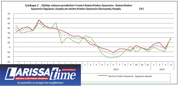 Η αύξηση του Γενικού Δείκτη Κύκλου Εργασιών Εξωτερικής Αγοράς κατά 19,4% τον μήνα Απρίλιο 2024, σε σύγκριση με τον αντίστοιχο δείκτη του Απριλίου 2023, προήλθε: