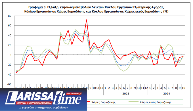 Η μείωση του Γενικού Δείκτη Κύκλου Εργασιών Εξωτερικής Αγοράς κατά 3,5% τον μήνα Οκτώβριο 2024, σε σύγκριση με τον αντίστοιχο δείκτη του Οκτωβρίου 2023, προήλθε: