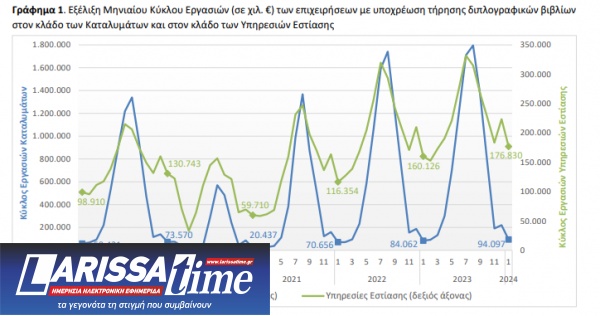 Για τις επιχειρήσεις στον κλάδο των Υπηρεσιών Εστίασης (κλάδος 56 της ταξινόμησης NACE Αναθ. 2), με υποχρέωση τήρησης διπλογραφικών βιβλίων, για τις οποίες υπάρχουν διαθέσιμα στοιχεία σε μηνιαία βάση, ο κύκλος εργασιών τον Ιανουάριο 2024 ανήλθε σε 176.829.556 ευρώ, σημειώνοντας αύξηση 10,4% σε σχέση με τον Ιανουάριο 2023, όπου είχε ανέλθει σε 160.125.978 ευρώ.