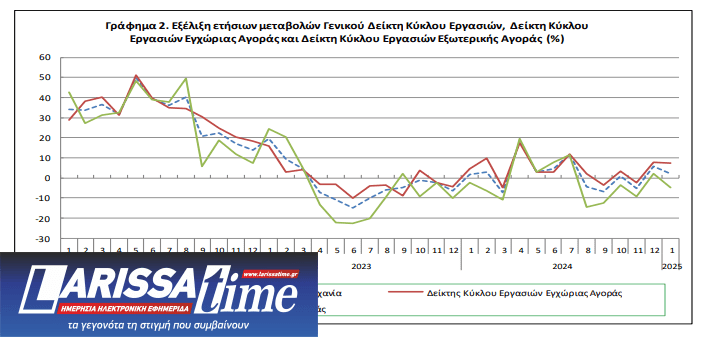 Σύγκριση Δείκτη Κύκλου Εργασιών Εγχώριας Αγοράς, μηνός Ιανουαρίου 2025, με τον αντίστοιχο δείκτη Ιανουαρίου 2024
